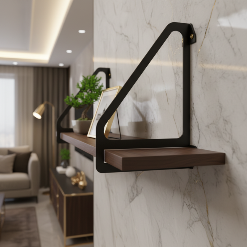 Moderný dizajnový držiak poličky SINGOLO v elegantnom čiernom matnom prevedení je ideálnou voľbou pre interiéry, ktoré spájajú minimalizmus, štýl a funkčnosť. Jeho geometrický tvar pôsobí odľahčene a zároveň ponúka vysokú stabilitu aj pri väčšej záťaži.