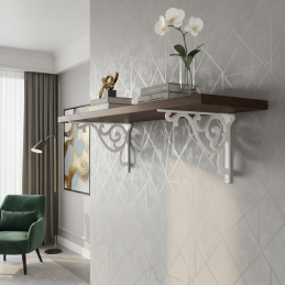 Elegantný a výrazný držiak poličky v rustikálnom prevedení, ktorý vďaka bielej matnej povrchovej úprave pôsobí jemne, čistо a štýlovo. Ornamentálne tvarovanie dodá každej poličke tradičný, romantický charakter – ideálny do vidieckych interiérov, provensálskych kuchýň, obývačiek či detských izieb.
