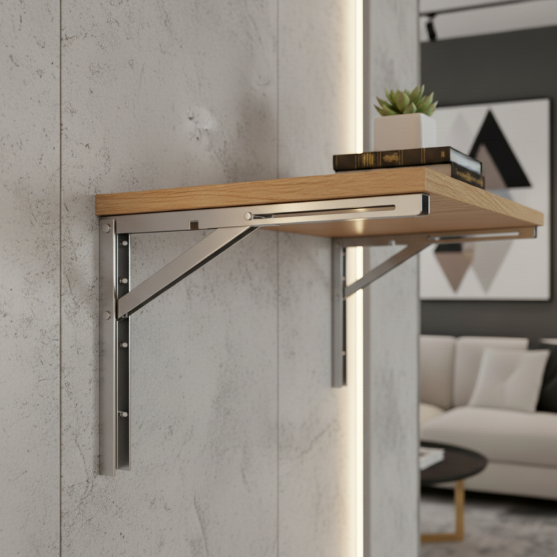 Pevná a praktická sklopná konzola vhodná pre police, skladacie stolíky, pracovné dosky či barové pulty. Vďaka pozinkovanému povrchu ponúka konzola zvýšenú odolnosť proti korózii, čo ju robí vhodnou nielen do interiéru, ale aj do menej chránených priestorov — garáže, pivnice či dielne.