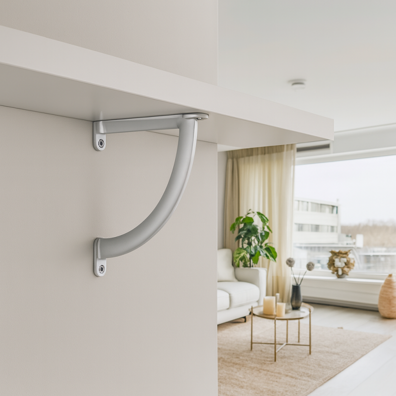 Elegantný a dizajnový držiak poličky s odporúčanou veľkosťou police od 200 - 400 mm. Maximálne zaťaženie police je 100 kg. Rozmery držiaka sú uvedené v obrázkoch.