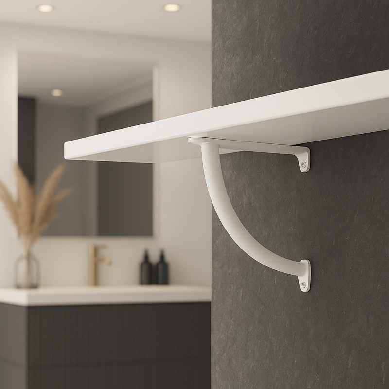 Elegantný a dizajnový držiak poličky s odporúčanou veľkosťou police od 200 - 600 mm. Maximálne zaťaženie police je 150 kg. Rozmery držiaka sú uvedené v obrázkoch.