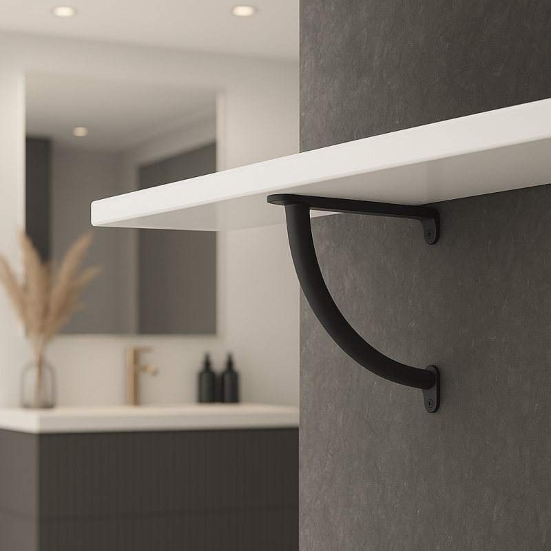 Elegantný a dizajnový držiak poličky s odporúčanou veľkosťou police od 200 - 600 mm. Maximálne zaťaženie police je 150 kg. Rozmery držiaka sú uvedené v obrázkoch.