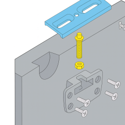 Bočné uchytenie je určené na montáž horného kolieska posuvných dverí. Používa sa predovšetkým v prípadoch, keď sú dvere ťažšie alebo existuje riziko, že by sa koliesko pri štandardnom uchytení z vrchu mohlo uvoľniť alebo utrhnúť.