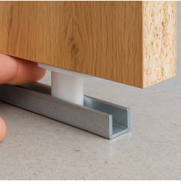 Plastové vodítko slúži na stabilné vedenie posuvných dverí a zabraňuje ich vychýleniu pri pohybe. Vďaka univerzálnej konštrukcii je možné ho použiť dvomi spôsobmi – buď sa zasunie do drážky v spodnej časti dverí, alebo sa použijú dve vodítka umiestnené oproti sebe medzi dverami.
