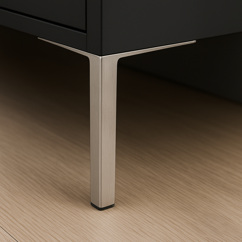 GILIAN je moderná dizajnová nábytková nožička so štvorcovým profilom, ktorá kombinuje pevnosť, funkčnosť a elegantný vzhľad. Vďaka svojmu tvaru pôsobí štýlovo pri rôznych typoch nábytku a najviac vynikne pri montáži v rohoch, kde podčiarkne čisté línie a zvýrazní dizajn celej zostavy. Je ideálnou voľbou nielen pre komody či stolíky, ale aj pre sedacie súpravy, ktorým dodáva moderný a vzdušný vzhľad.