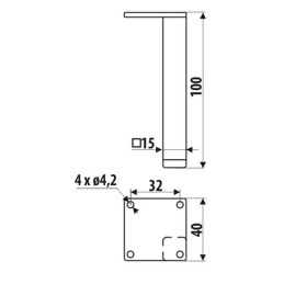 Podstava 40 × 40 mm – pevná základňa pre stabilné uchytenie k nábytku.