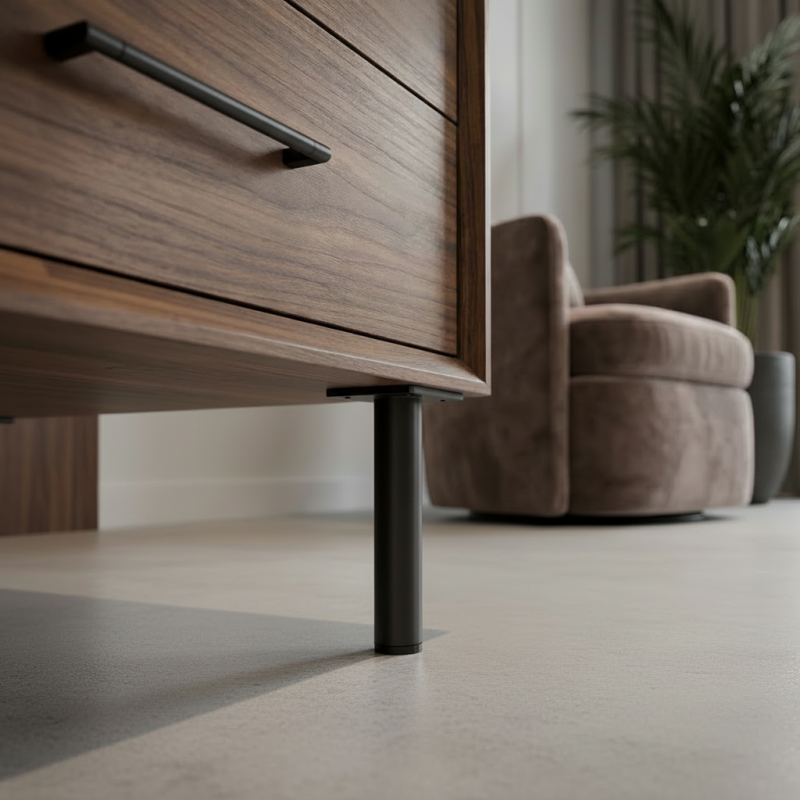 Nožička je vhodná napríklad pre skrinky, komody, kúpeľňový nábytok, TV stolíky alebo menšie stolíky. Pevná kovová konštrukcia zabezpečuje stabilitu a dlhú životnosť.