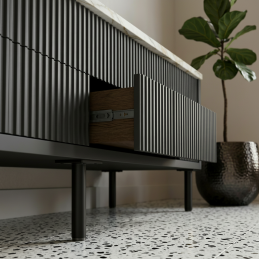 Nožička LEONOR v čiernom matnom prevedení dodá nábytku moderný charakter a zároveň zabezpečí jeho stabilnú oporu bez poškodenia podlahy.