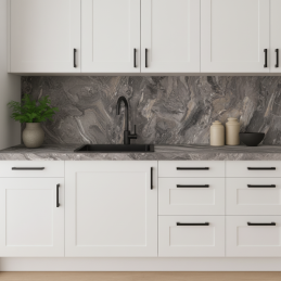 Dodajte svojej kuchyni praktickú ochranu a elegantný vzhľad s našou kuchynskou zástenou vyrobenou z kvalitnej drevotriesky potiahnutej odolným laminátom. Tento materiál sa vyznačuje vysokou odolnosťou voči poškodeniu, mechanickej záťaži a zvýšeným teplotám, čo zaručuje dlhú životnosť aj pri každodennom používaní.