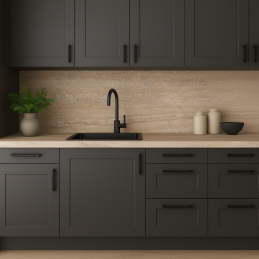 Dodajte svojej kuchyni praktickú ochranu a elegantný vzhľad s našou kuchynskou zástenou vyrobenou z kvalitnej drevotriesky potiahnutej odolným laminátom. Tento materiál sa vyznačuje vysokou odolnosťou voči poškodeniu, mechanickej záťaži a zvýšeným teplotám, čo zaručuje dlhú životnosť aj pri každodennom používaní.