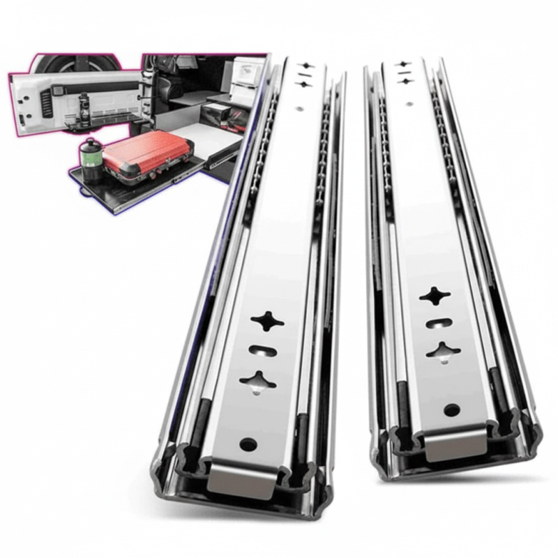 Profesionálny guľôčkový plnovýsuv bez tlmenia, určený pre zásuvky s extrémnym zaťažením alebo veľkou dĺžkou. Ideálne riešenie pre dielne, sklady, technické priestory, priemyselné skrine či špeciálne projekty, kde je potrebná maximálna pevnosť a spoľahlivosť.
