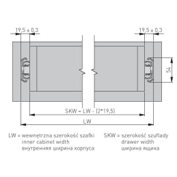 Pre výpočet šírky zásuvky je potrebné od vnútornej šírky korpusu odpočítať 19,5 mm