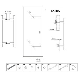 Vďaka priloženým nadstavcom je madlo vhodné pre rôzne hrúbky dverí – od 8 až do 40 mm. Štandardne je určené pre dvere s hrúbkou 8 až 18 mm, ale pomocou nadstavcov, ktoré sú súčasťou balenia, ho možno prispôsobiť aj hrubším dverám.