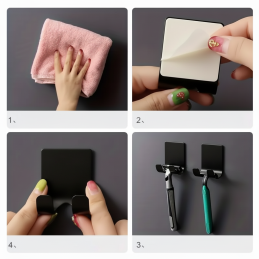 Vešiak je vybavený kvalitnou obojstrannou lepiacou páskou, takže jeho inštalácia je okamžitá – stačí nalepiť na čistý a suchý povrch. Skvele drží na obkladoch, skle aj hladkom plastovom povrchu.