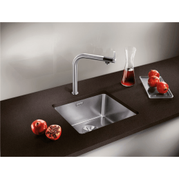 Tento model je ideálnou voľbou pre tých, ktorí hľadajú moderný, minimalistický a luxusný drez pre svoju kuchyňu. Kombinácia hodvábne lesklého nerezu, montáže pod dosku a technológií C-overflow® a InFino® vytvára harmonický a elegantný prvok s maximálnou funkčnosťou.