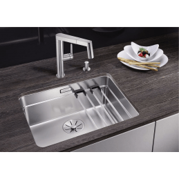 Blanco Etagon 500-U je elegantný a funkčný kuchynský drez z nerezovej ocele v prémiovom prevedení hodvábny lesk. Montáž pod pracovnú dosku (undermount) zabezpečuje čistý, minimalistický a luxusný vzhľad pracovnej plochy.