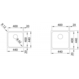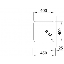 Vanička s rozmermi 400 × 400 mm a hĺbkou 185 mm (rádius R42) poskytuje komfortný pracovný priestor aj pri manipulácii s väčším riadom.