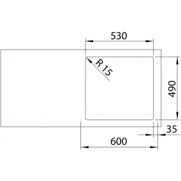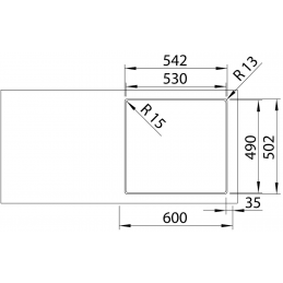 Priestranná vanička s rozmermi 500 × 400 mm a hĺbkou 175 mm (rádius R60) poskytuje dostatok miesta na každodenné umývanie riadu.