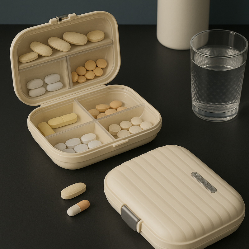 Predstavujeme vám revolúciu v organizácii vašich liekov - Exkluzívny organizér na lieky WELL v elegantnej krémovej farbe. S naším organizérom si už viac nemusíte lámať hlavu nad rozhádzanými práškami v kabelke či doma. Tento praktický kontajner na lieky je navrhnutý tak, aby spĺňal všetky vaše potreby s maximálnou efektivitou a štýlom.