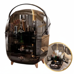 Vyrobený je z kvalitného akrylového plastu v modernom dymovom odtieni, doplneného o elegantné zlaté detaily, ktoré organizéru dodávajú exkluzívny a luxusný charakter. Napriek svojej veľkej kapacite zaberá minimum miesta a udrží váš kozmetický stolík dokonale usporiadaný.
