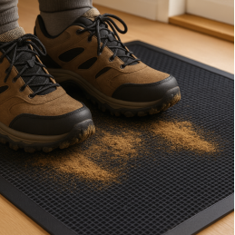 Či už prichádzate z dažďa, záhrady alebo rušnej ulice – táto rohožka sa postará o to, aby zostal priestor za dverami čistý a bezpečný.