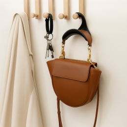 Jeho zaoblený tvar chráni popruhy kabeliek pred deformáciou a zaistená stabilita zaručuje, že všetko zostane bezpečne na mieste.