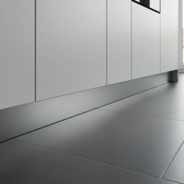 Elegantný plastový kuchynský sokel PAX v dekore nerez brúsený je ideálnym riešením pre moderné, industriálne aj klasické kuchyne.