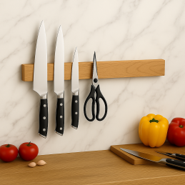 👉 Nerezový magnetický držiak je ideálnym riešením pre každého, kto hľadá praktický, elegantný a spoľahlivý spôsob uskladnenia nožov – rýchla montáž, bezpečné držanie a maximálny komfort pri varení.