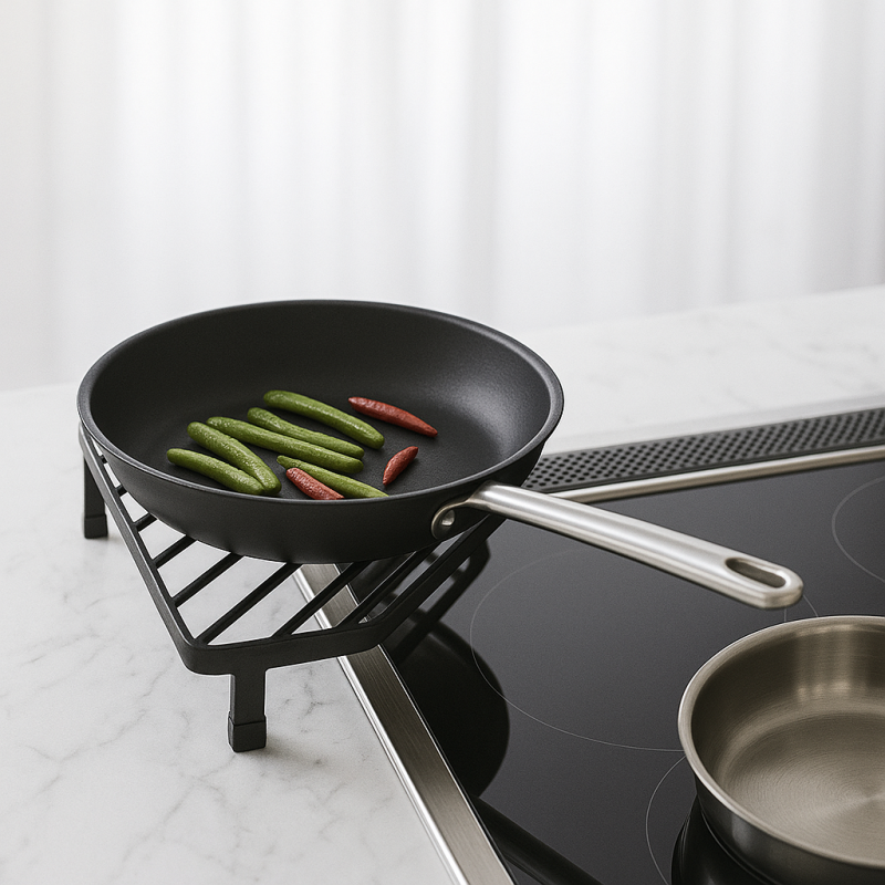 Štýlová a praktická rohová odkladacia polička je ideálnym doplnkom ku kuchynskej linke – najmä v priestore pri sporáku. Umožňuje bezpečné a pohodlné odkladanie horúcich panvíc, hrncov či kuchynského riadu bez rizika poškodenia pracovnej dosky.