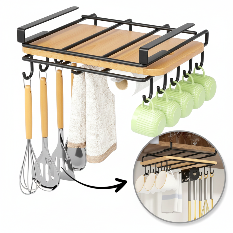 vhodný na dosky, utierky, rolky, šálky či kuchynské drobnosti