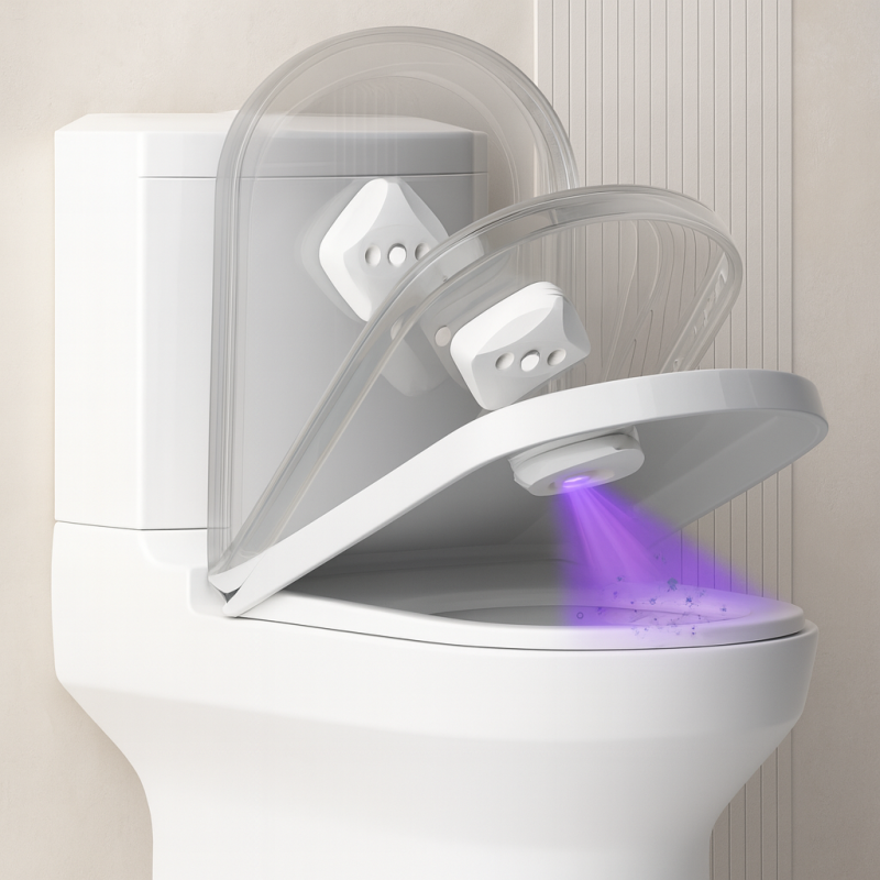 Stačí ju umiestniť pod veko toalety – po zatvorení sa automaticky aktivuje a spustí dezinfekčný cyklus.