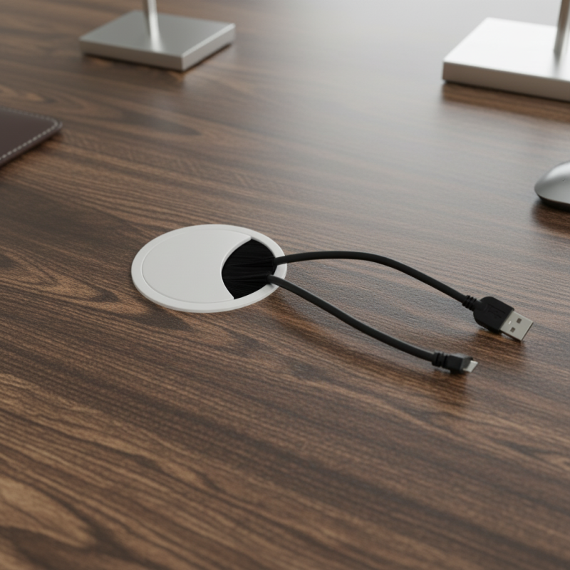 Elegantná biela priechodka na káble LOOP 80 je moderné a praktické riešenie pre skryté vedenie káblov v kancelárii, pracovni, študentskej izbe či v domácnosti. Vďaka čistému bielemu prevedeniu pôsobí nenápadne a perfektne ladí s bielym nábytkom alebo svetlými pracovnými doskami.