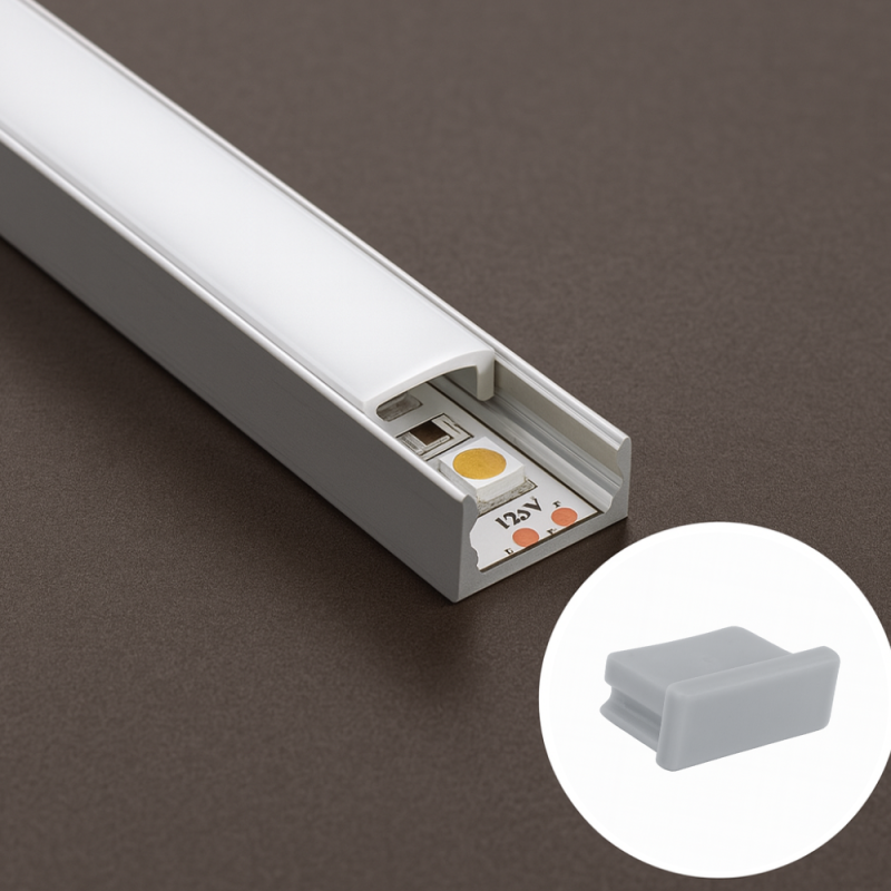 Slúži na estetické a presné ukončenie LED profilu, čím zabezpečuje profesionálny vzhľad osvetlenia a chráni vnútorné časti profilu pred prachom a mechanickým poškodením.