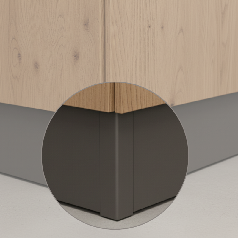 Rohová spojka slúži na spájanie kuchynských soklov pod uhlom 90° – ideálne riešenie pre presné, pevné a elegantné prepojenie v rohoch kuchynskej linky.