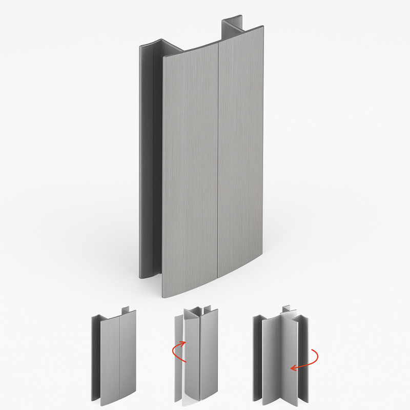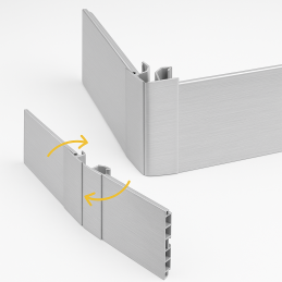 Flexibilná spojka na kuchynský sokel PAX v dekore nerez brúsený je praktickým riešením na spájanie soklov pod rôznymi uhlami v rozmedzí 90° až 270°.