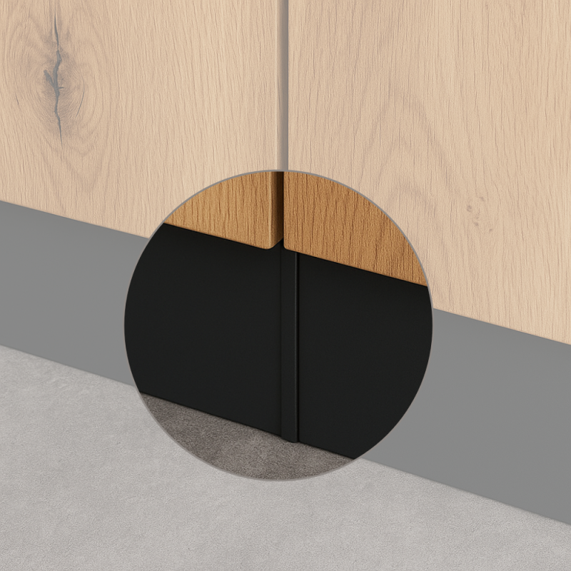 Lineárna spojka je praktický prvok určený na spojenie dvoch kusov plastového sokla do jednej roviny. Vďaka presnému tvarovaniu vytvára plynulý prechod bez viditeľných medzier, čím zabezpečí čistý a profesionálny vzhľad kuchynskej linky.