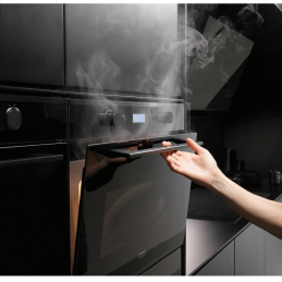 Elegantné čierne sklo a nerezový interiér dodávajú spotrebiču nadčasový vzhľad, ktorý dokonale zapadne do modernej kuchyne.