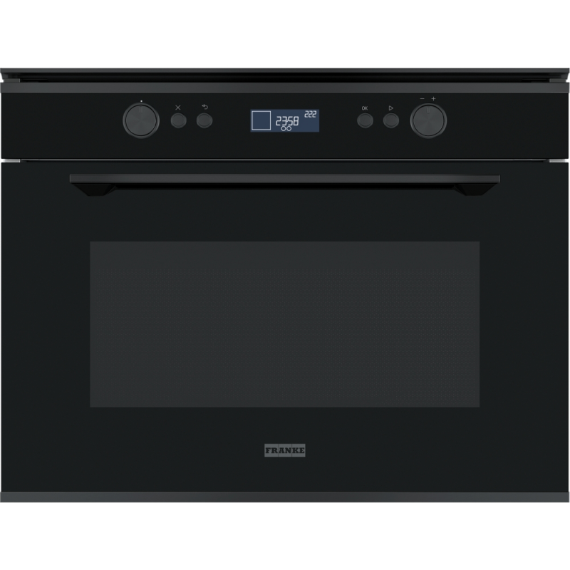 Vstavaná kompaktná rúra Franke FMY 45 MW BK zo série Mythos ponúka tri funkcie v jednom spotrebiči – mikrovlnnú rúru, gril a teplovzdušné pečenie.