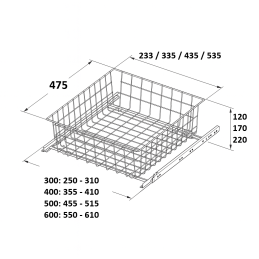 Stabilná konštrukcia – maximálne zaťaženie koša je 10 kg, výsuv bez tlmenia zabezpečuje jednoduché používanie.