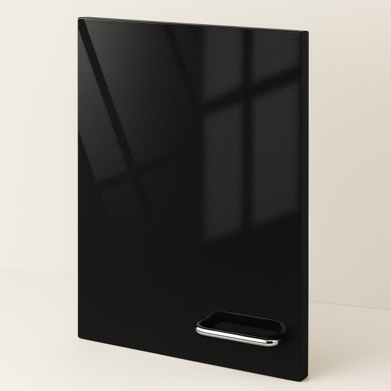 Zažite dokonalé spojenie luxusu, elegancie a odolnosti s MDF dvierkami potiahnutými prémiovou fóliou SENOSAN v odtieni Čierna metalíza SCR 8427.