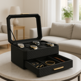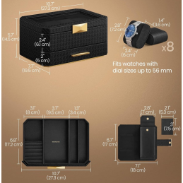 Kapacita: 8 priehradiek na hodinky + zásuvka na šperky/doplnky