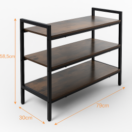 Farba: Čierny rám + hnedé drevené police