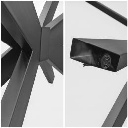 Nohy vychádzajú zo stredu do všetkých smerov, čo umožňuje pohodlné sedenie bez prekážok pre nohy a zároveň dodáva stolu dynamický architektonický vzhľad. V spodnej časti sú staviteľné nožičky, ktoré umožňujú vyrovnať nerovnosti podlahy.