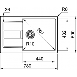 • Vonkajší rozmer drezu: 780 × 500 mm