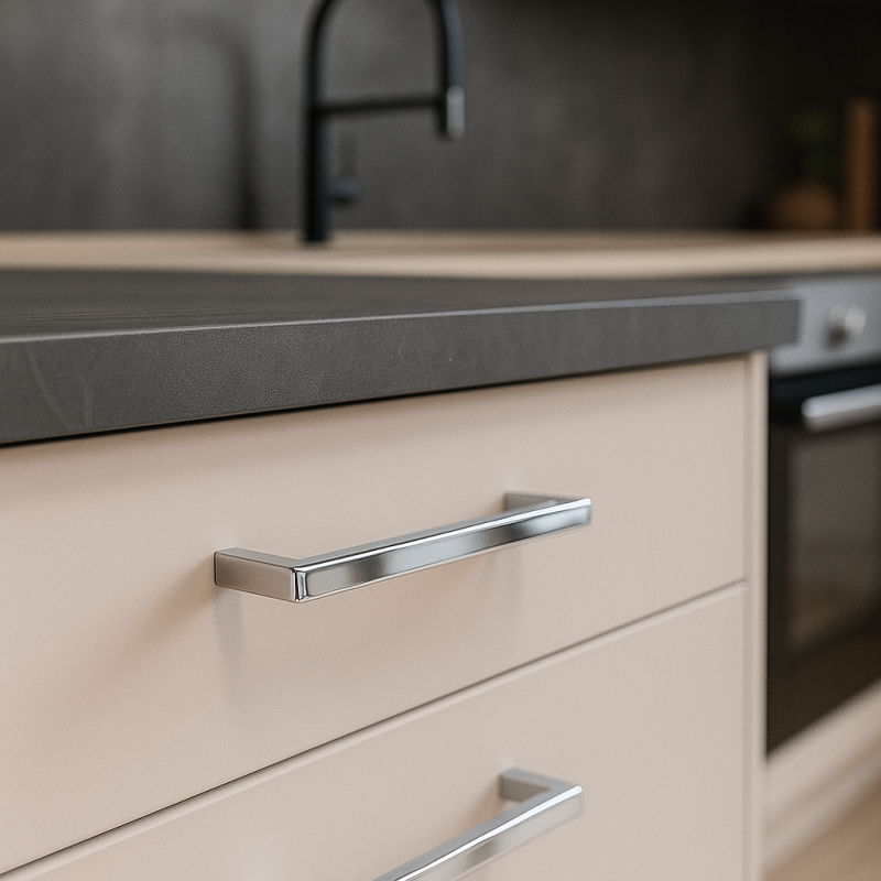 Úchytka PISA prináša jednoduchý, čistý a nadčasový vzhľad, ktorý sa hodí do každej modernej aj klasickej domácnosti. Minimalistický hranatý tvar podčiarkne eleganciu kuchynskej linky, komody, šatníkovej skrine alebo kancelárskeho nábytku.