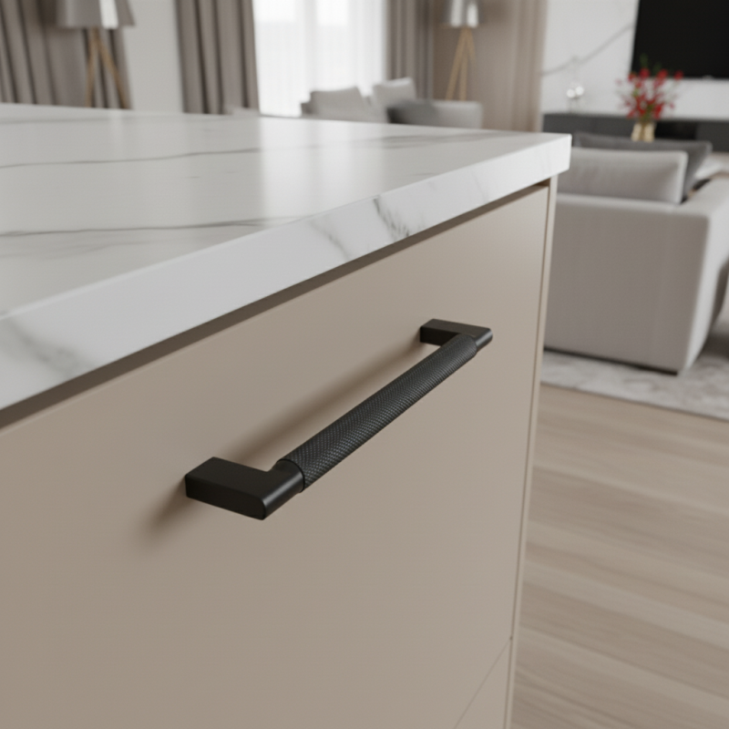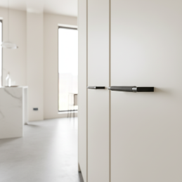 Dizajnová úchytka INDUST v povrchovej úprave čierna matná je výrazným prvkom industriálneho štýlu, ktorý dodá nábytku luxusný a moderný technický vzhľad. Ryhovaný (knurled) povrch poskytuje nielen prémiový estetický dojem, ale aj výborný úchop. Masívna kovová konštrukcia zaisťuje dlhú životnosť a odolnosť pri každodennom používaní.