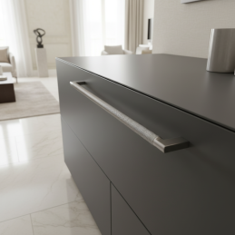 Dizajnová úchytka INDUST v elegantnom prevedení ušľachtilá oceľ mat prináša moderný industriálny štýl v prémiovej saténovej úprave. Vďaka výraznému ryhovanému (knurled) povrchu pôsobí luxusne, technicky a zároveň ponúka veľmi pohodlný úchop.