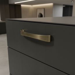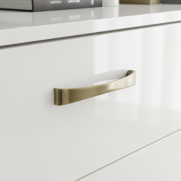 Elegantná nábytková úchytka VITTO v prevedení zlatá patina brúsená zaujme svojím jemne oblým tvarom a luxusným povrchom. Kombinácia brúseného efektu a patiny dodáva úchytke nadčasový charakter, ktorý sa výborne hodí do klasických, elegantných aj moderných interiérov.
