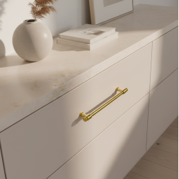 Elegantná kovová úchytka v luxusnom zlatom lesklom prevedení, ktorá dodá nábytku nadčasový a reprezentatívny vzhľad. Vhodná do kuchýň, kúpeľní, šatníkov, komôd aj iného interiérového nábytku v modernom aj klasickom štýle.