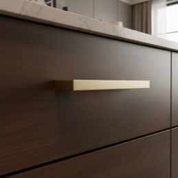 Elegantná nábytková úchytka ZETA v zlatom prevedení je ideálnou voľbou pre moderné aj klasické interiéry. Jej čistý, hranatý dizajn dodáva nábytku luxusný a nadčasový vzhľad a zároveň zabezpečuje pohodlné a pevné uchopenie.